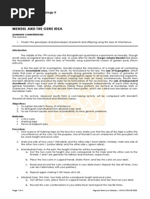 Lab Activity No 1 Mendel And The Gene Idea Pdf Genotype Organisms